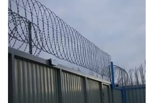 Плоский барьер безопасности (ПББ) представляет собой плоскую, спиралевидную конструкцию из армированной колючей ленты, витки которой, также как и у СББ, скрепляются между собой при помощи скоб из оцинкованной стали.