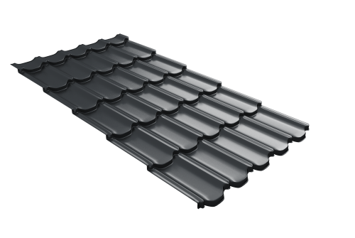 Металлочерепица квинта плюс Grand Line c 3D резом 0,45 Drap TR RAL 7016 антрацитово-серый